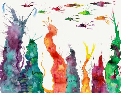 Steve's Splotch Monster paintings began as an experiment and a daily creative exercise and became so much more, these critters created from watercolors, acrylics, coffee, India ink, tea and more, branched out into many different directions, from cute and cartoony to more serious, abstract compositions, to something in between. The colorful monsters have exhibited widely, and even got profiled (along with their creator) in Washington's City Paper. For more information about Steve and his artwork please visit his website or steveloya72